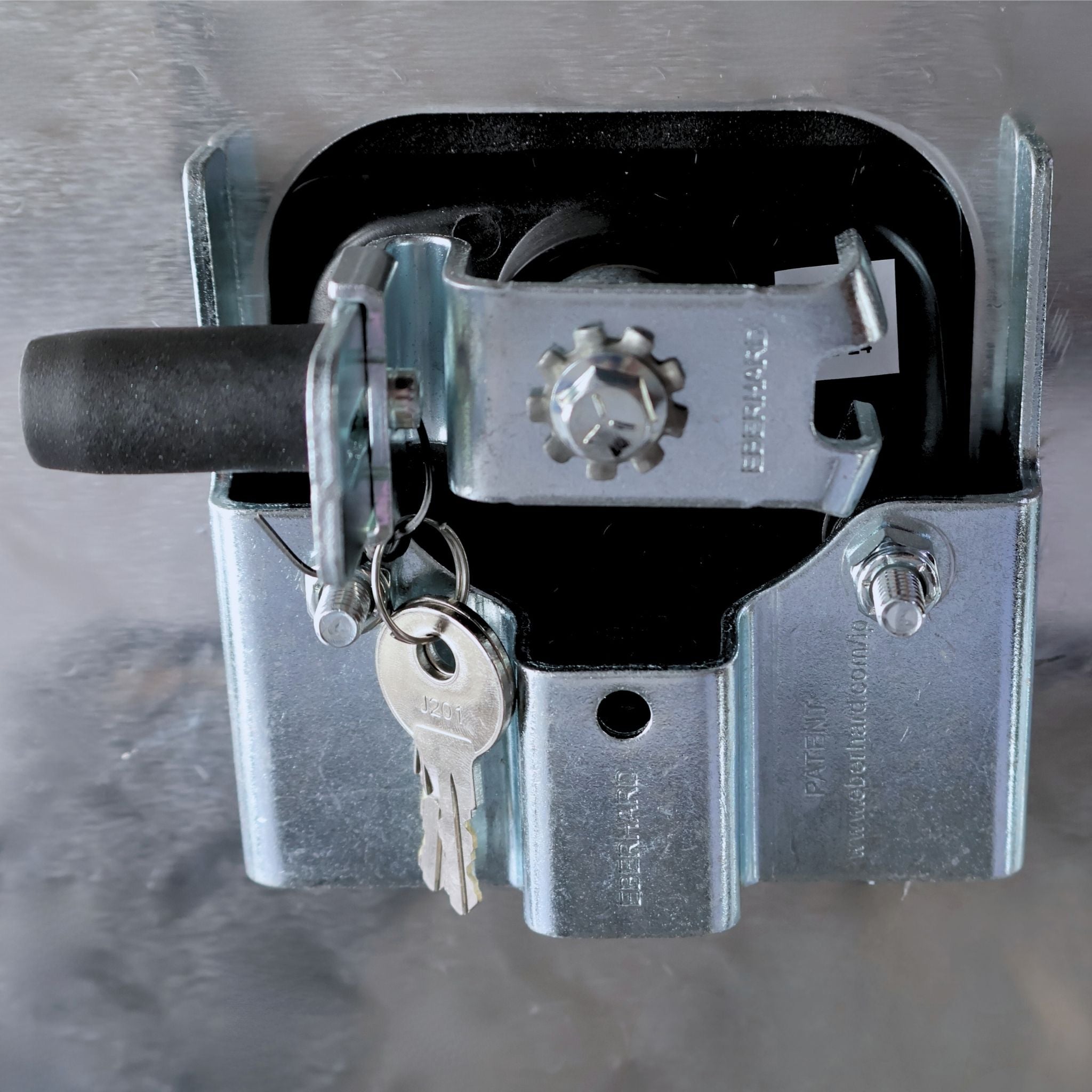 - Full-length stainless steel hinges and lockable T-handle latches